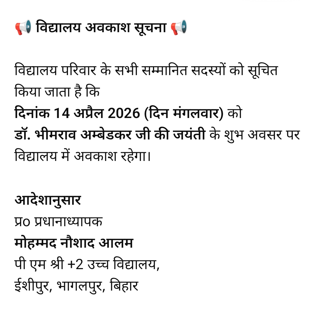Established in year 1939, HIGH SCHOOL ISHIPUR BHAGALPUR is located in Rural area of Bihar state/ut of India. In Ishipur area of Pirpainti block of Bhagalpur district. Area pincode is 813206. School is being guided under supervision of Mr. MD Naushad AlamSchool is providing Secondary, High Secondary (6-12) level education and is being managed by Department of Education.Medium of instruction is Hindi language and school is Co-educational.School is affiliated with State Board for secondary level.