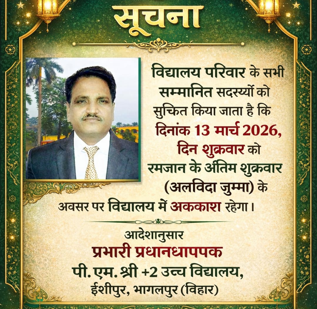 • रमजान महीने के आखिरी शुक्रवार को छुट्टी संबंधित सूचना